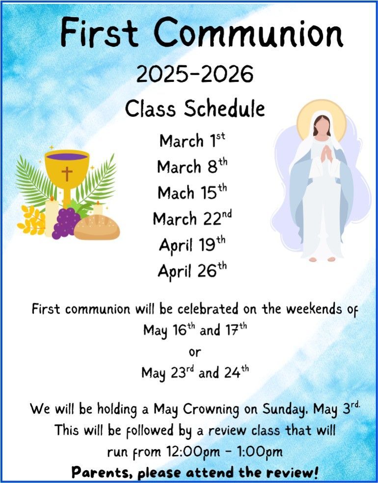 Faith formation classes give children the opportunity to learn more about God and to grow in their faith and spiritual development. Classes cover a wide range of topics including - the sacraments, prayers, saints, and the history of the Catholic church. In addition to Sacramental preparation programs, we offer the following: